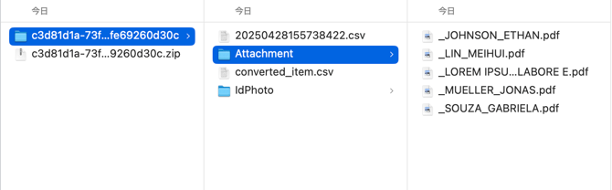 💡 入管オンラインシステムでは学生データ一件ずつに対し、対応する顔写真ファイルと添付書類ファイルをアップロードします。そのため、ファイルの選択ミスをしないようなファイル名称をつけるとスムーズな申請を行うことができます。