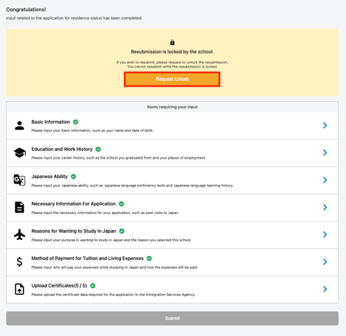 This article explains how to request an unlock from your school if your screen is locked after submitting your information in SpeedVisa. This allows you to edit submitted content safely and correctly.